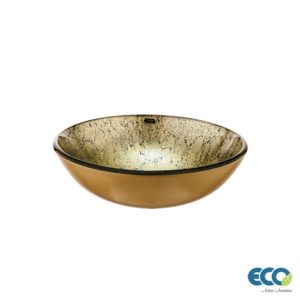 CUBA DE VIDRO REDONDA ONDULADA MÁRMORE OURO 42045