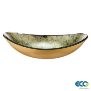 CUBA DE VIDRO OVAL PEQUENA MÁRMORE OURO 43145