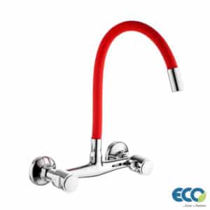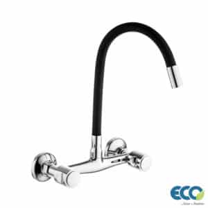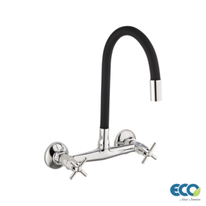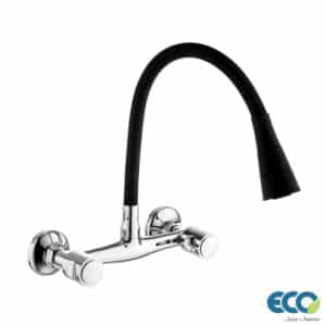 MISTURADOR ÁGUA QUENTE/FRIA, MODELO DE PAREDE COM BICA E DUCHA GOURMET DE SILICONE PRETA.