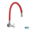 TORNEIRA ÁGUA FRIA, MODELO DE PAREDE COM BICA FLEXÍVEL E DUCHA DOIS JATOS, SILICONE PRETA.
