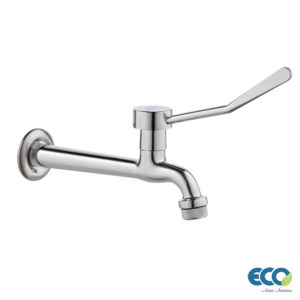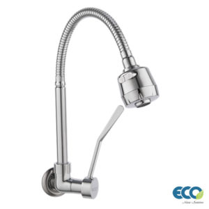 TORNEIRA ÁGUA FRIA, MODELO DE PAREDE COM BICA FLEXÍVEL DE SILICONE PRETA.
