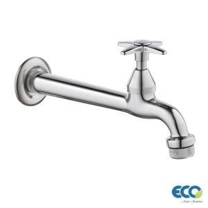 TORNEIRA ÁGUA FRIA, MODELO DE PAREDE PARA TANQUE COM 20CM DE COMPRIMENTO, MANOPLA C-50, MECANISMO CERÂMICO DE 1/4 DE VOLTA, AÇO INOX.