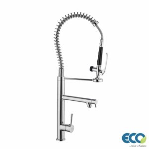 MONOCOMANDO ÁGUA QUENTE/FRIA, MODELO COZINHA BICA MÓVEL ALTA, CARTUCHO CERÂMICO, METAL CROMADO.