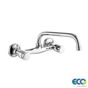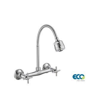 MISTURADOR ÁGUA QUENTE/FRIA, MODELO DE PAREDE COM BICA MÓVEL E MANOPLA EM CRUZ, METAL CROMADO.