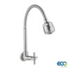 TORNEIRA ÁGUA FRIA, MODELO DE PAREDE COM BICA ARTICULÁVEL E DUCHA DOIS JATOS, MECANISMO CERÂMICO DE 1/4 DE VOLTA, AÇO INOX.